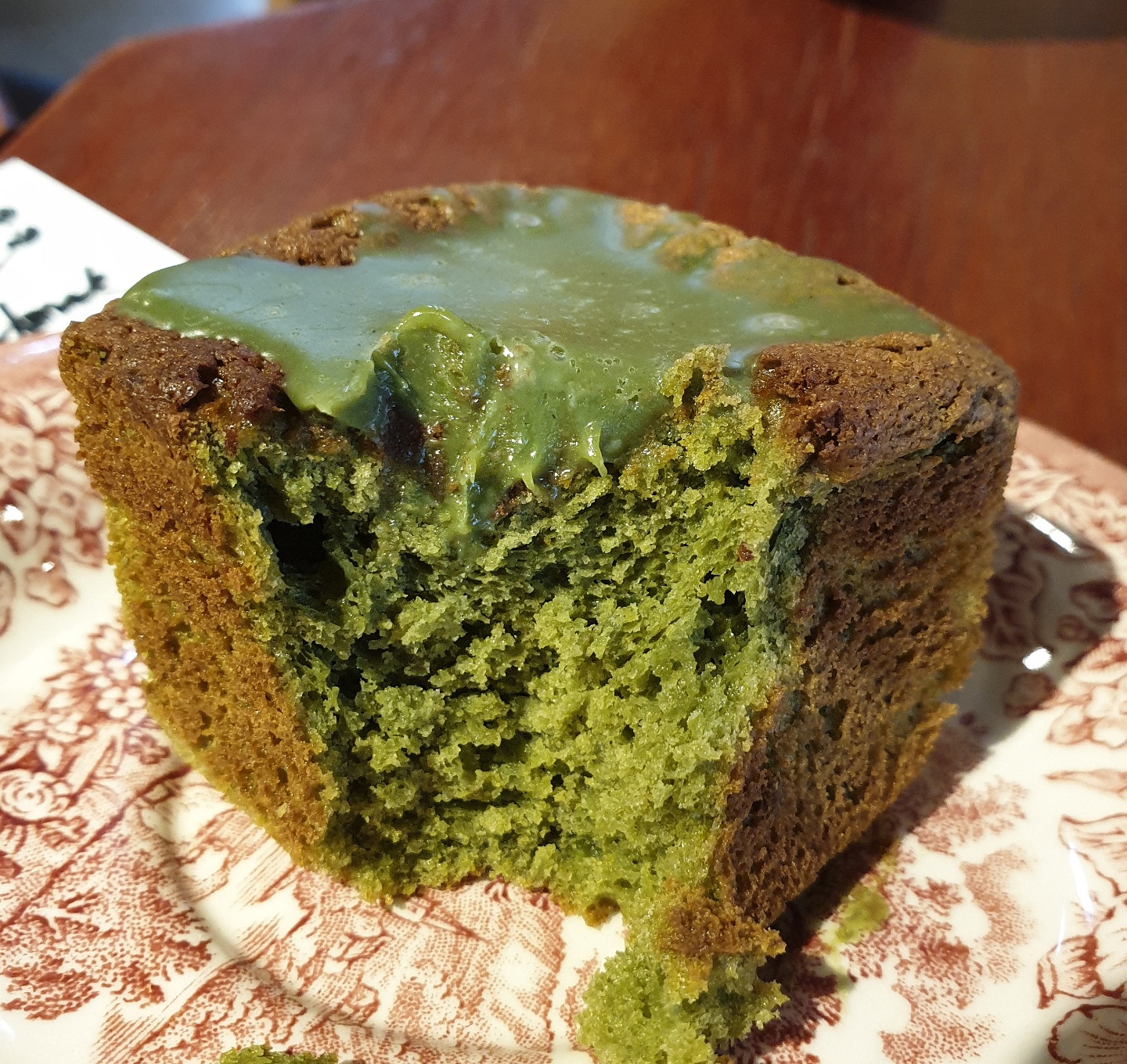 말차 맛 빵 위에 말차 초콜릿이