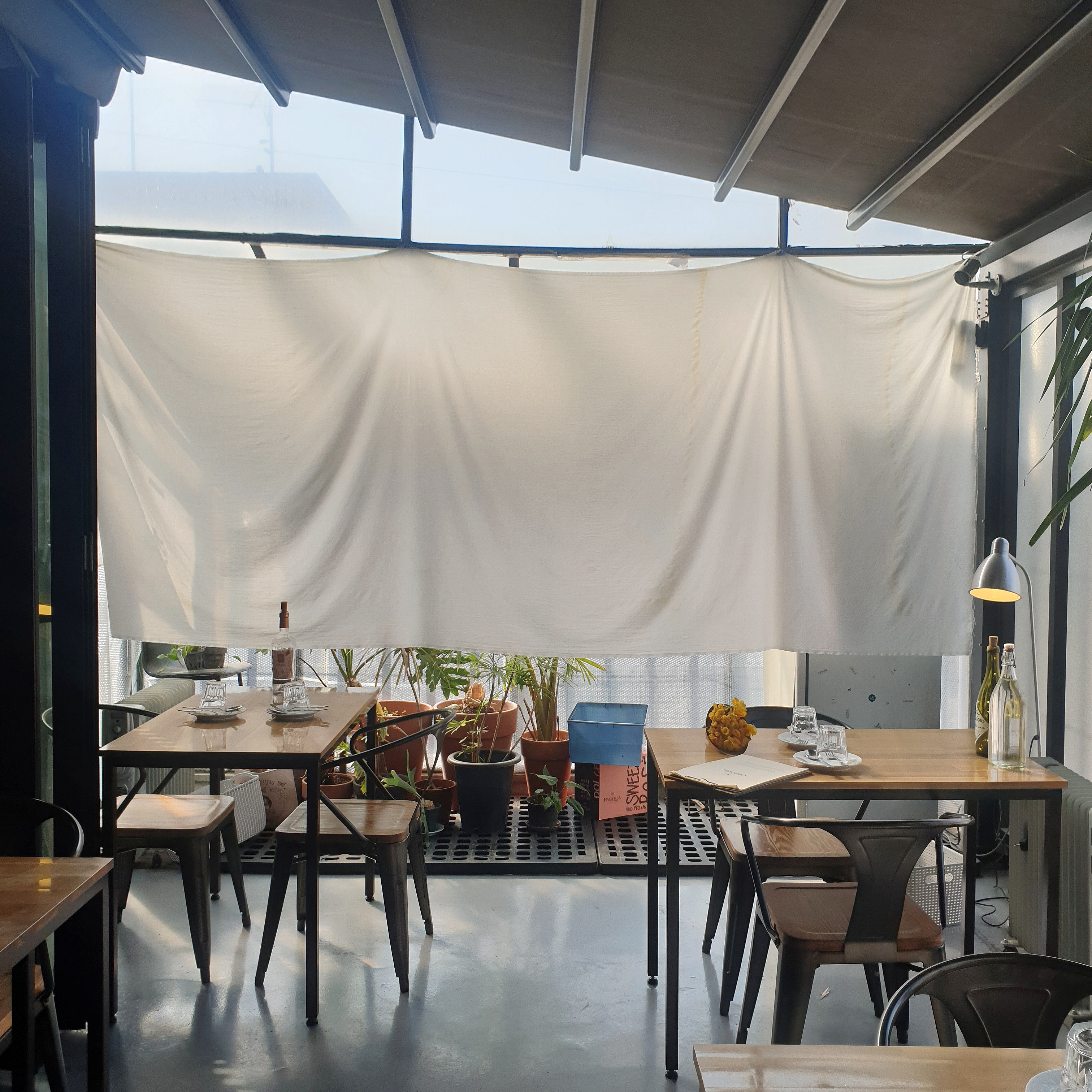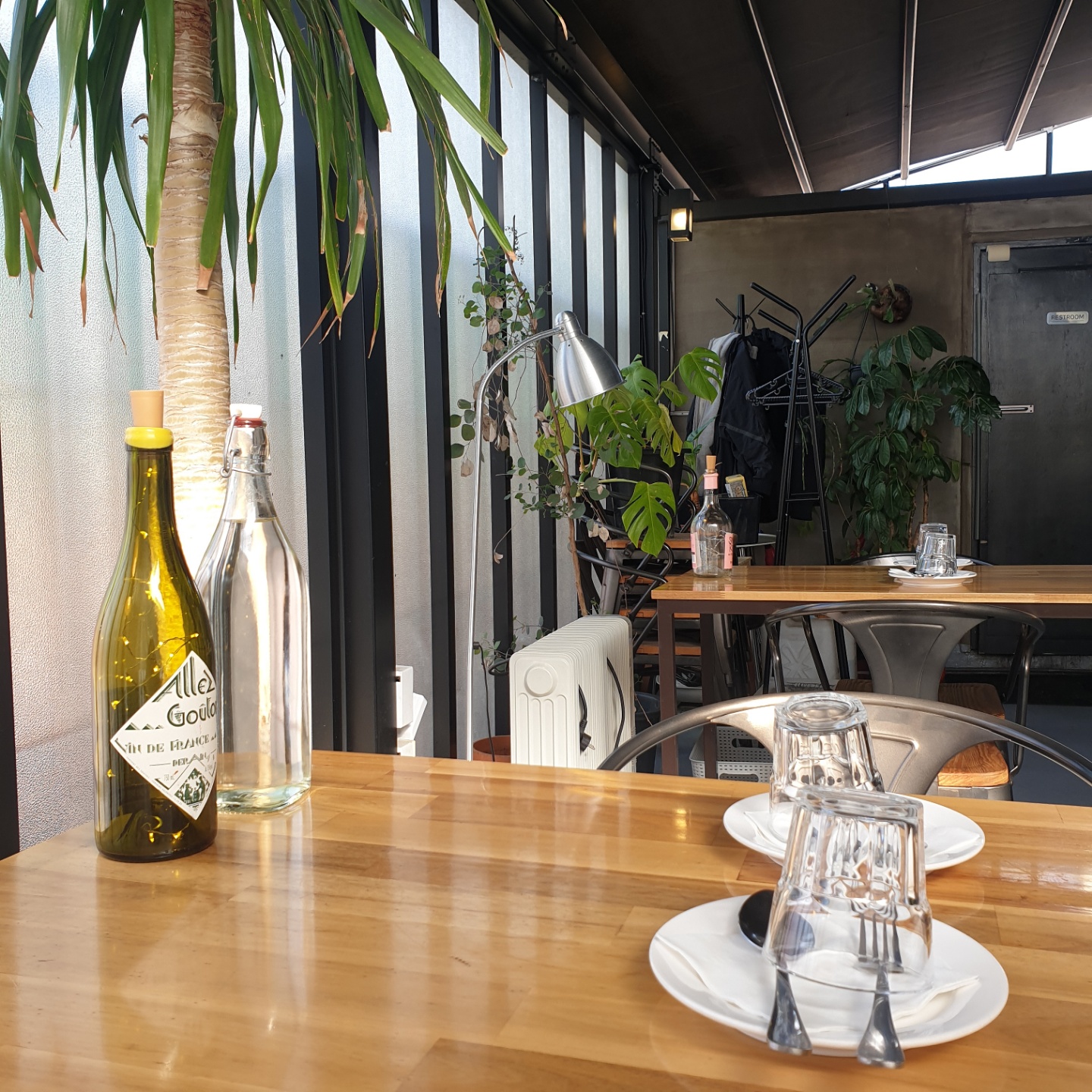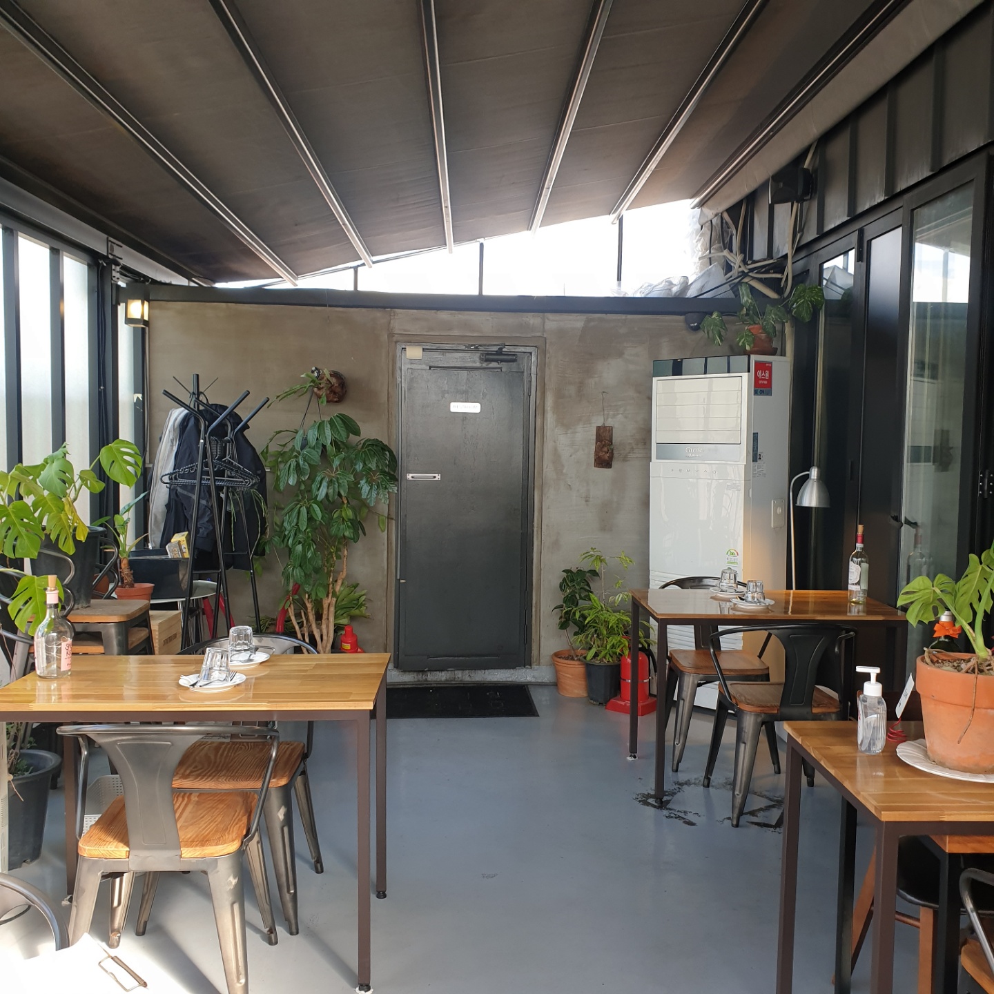 테이블마다 와인병 데코가 돋보이네요