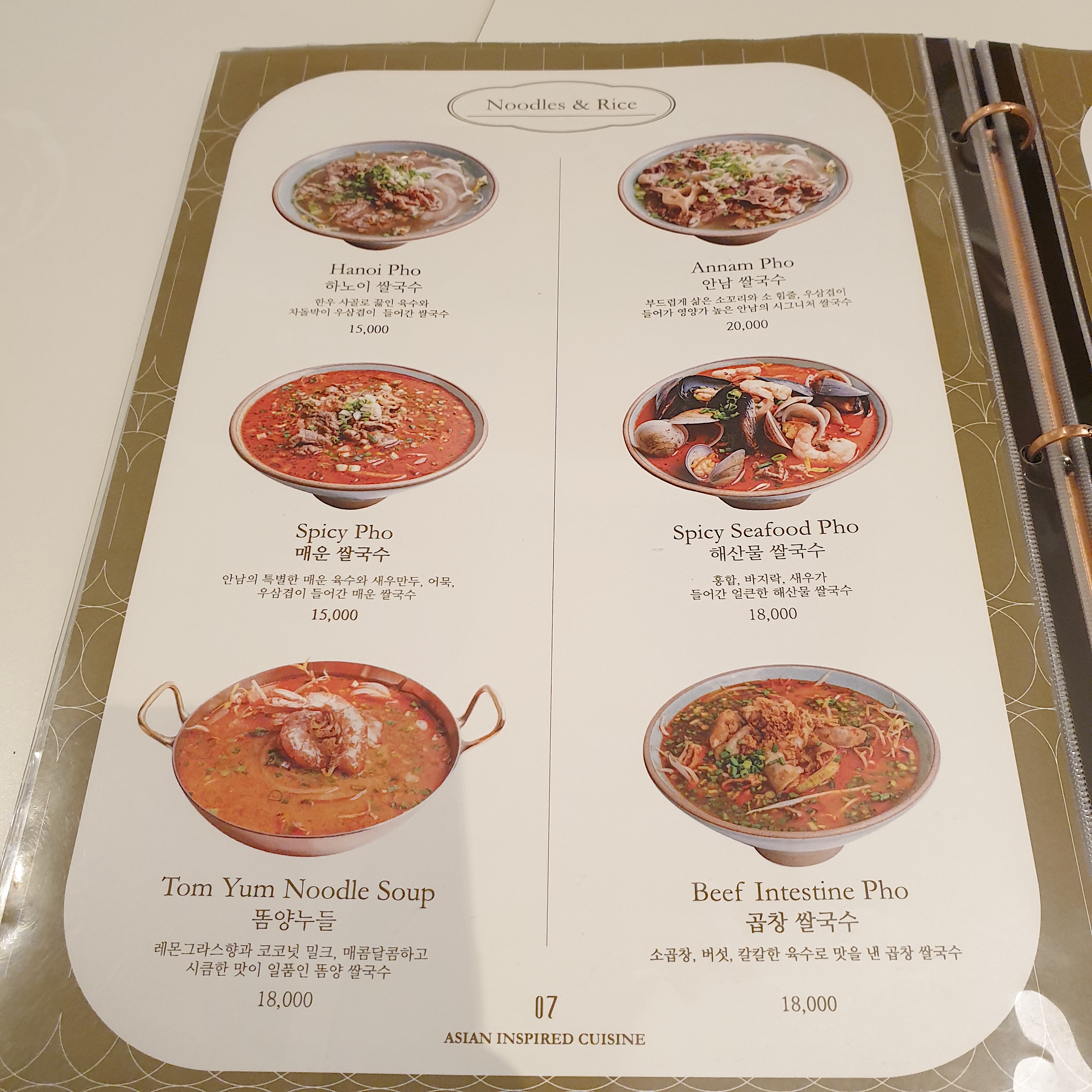 곱창 쌀국수, 해산물 쌀국수, 똠양누들 등등,