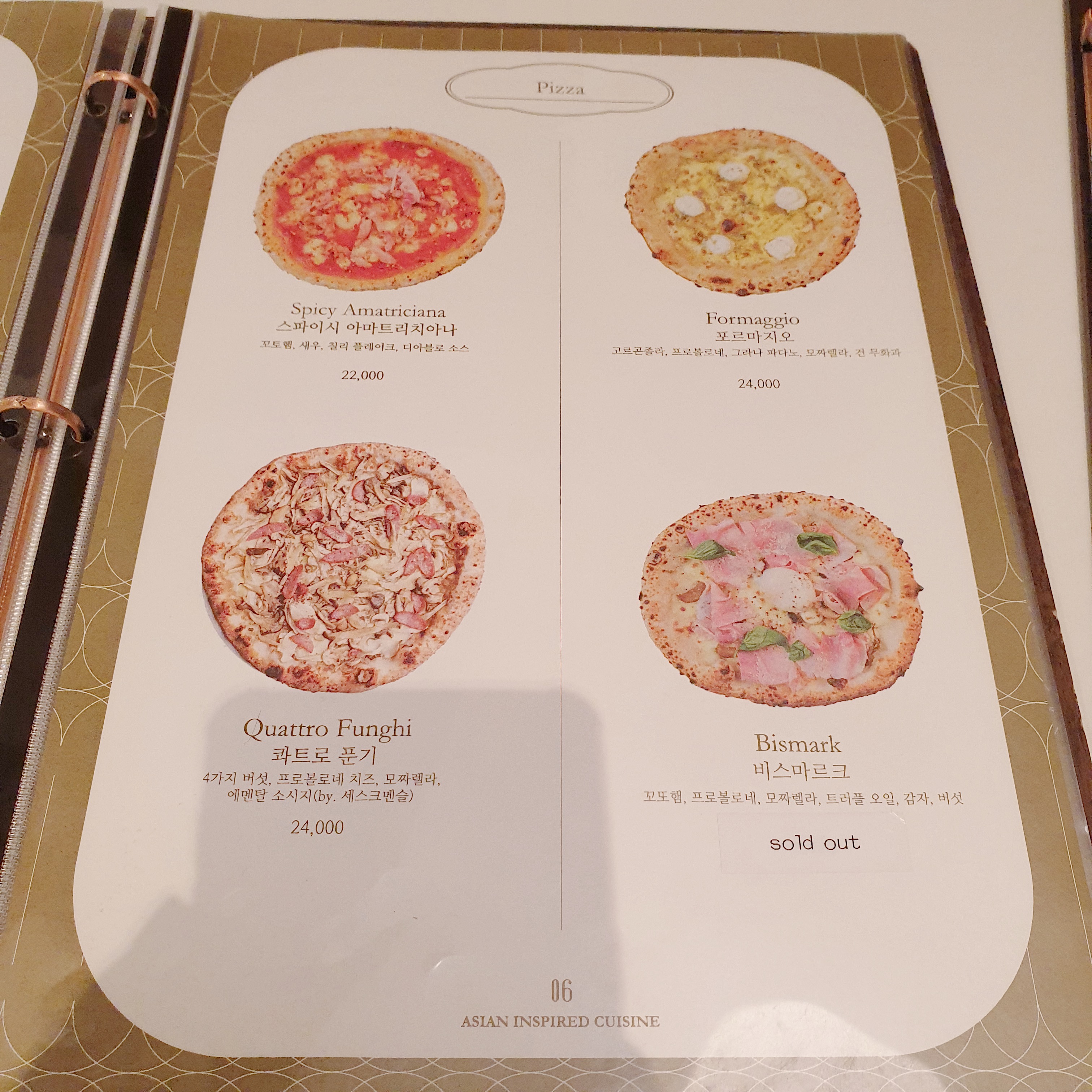 신기하게 메뉴판에 뭔가 진심인 피자들이 있었어요 ㅋㅋ