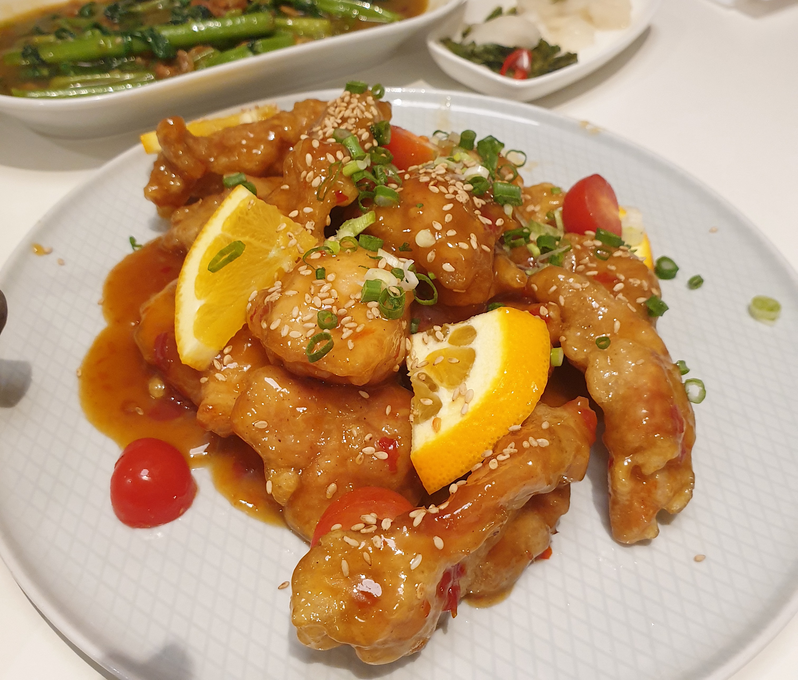 메인으로 푸팟뽕커리랑 오렌지 치킨을 주문했습니다.