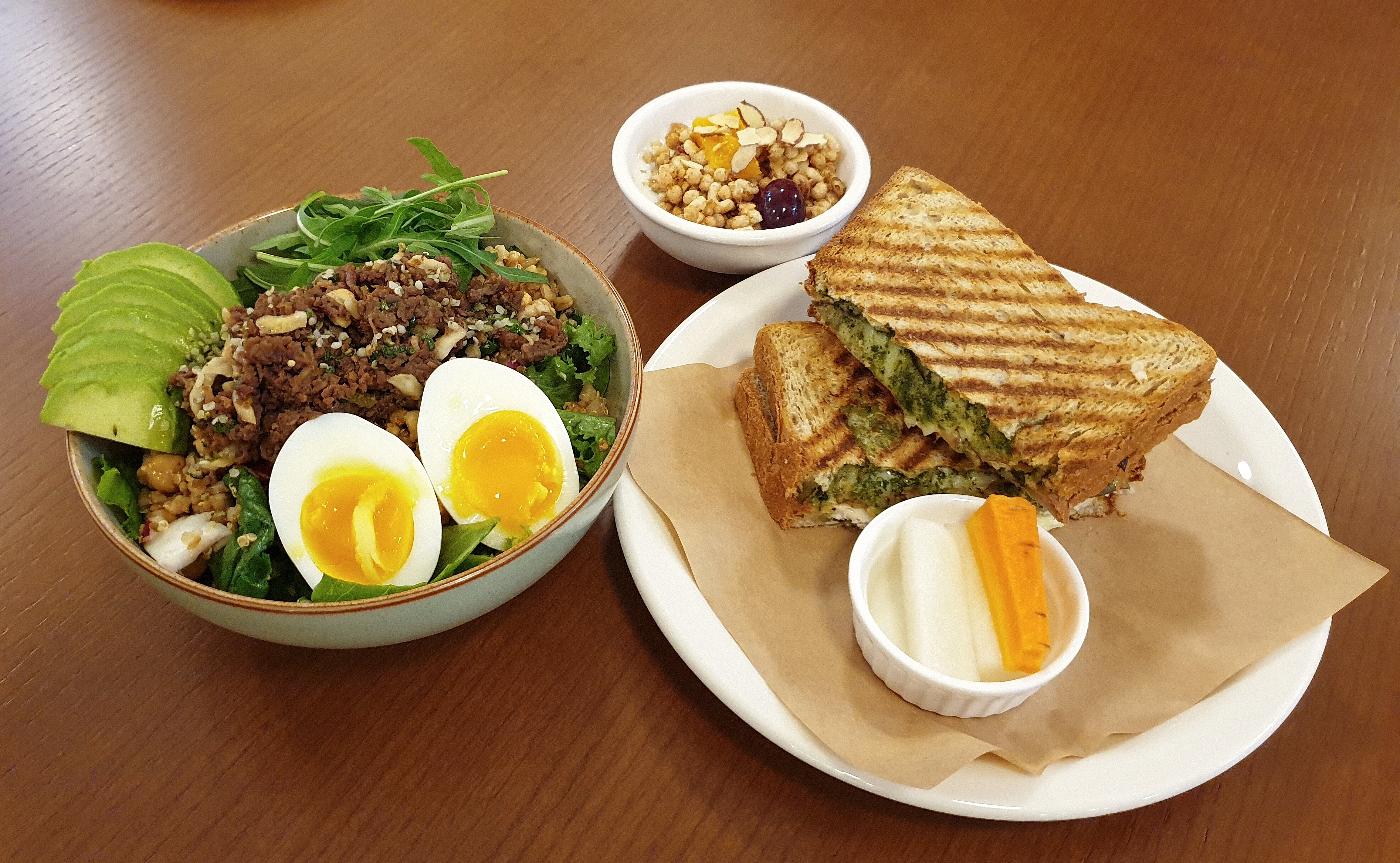 파니니 세트는 치킨/ 불고기/ 버섯을