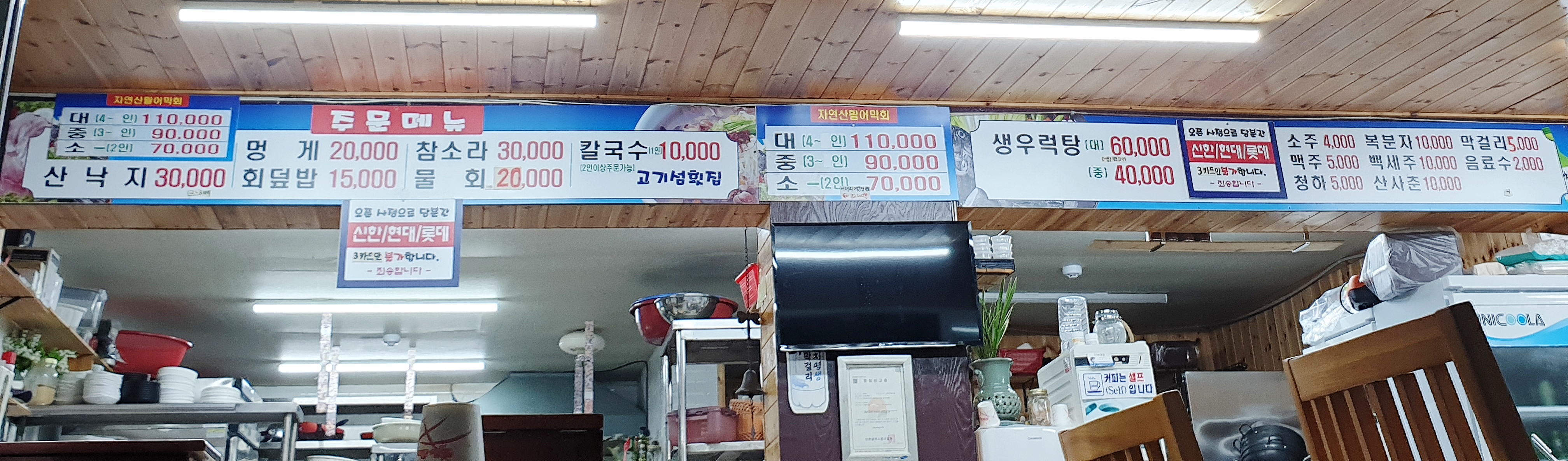 고기섬 횟집의 메뉴판은 따로 나오지 않고