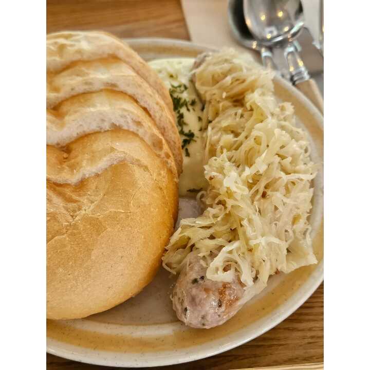 맛있어 보이는 브랏부어스트와 자우어크라프트!