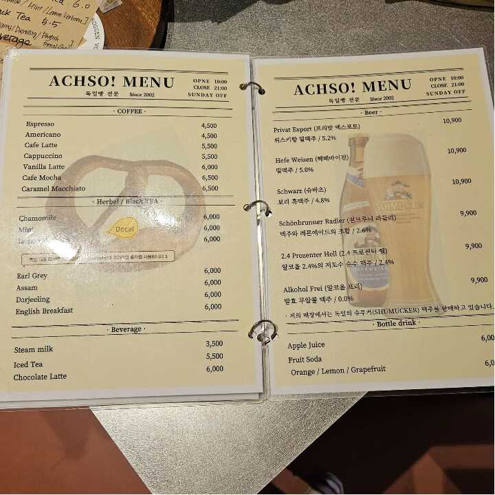 음료 메뉴를 보면 커피 메뉴와 차도 같이 판매하고 있고, 악소의 가장 좋은 점!