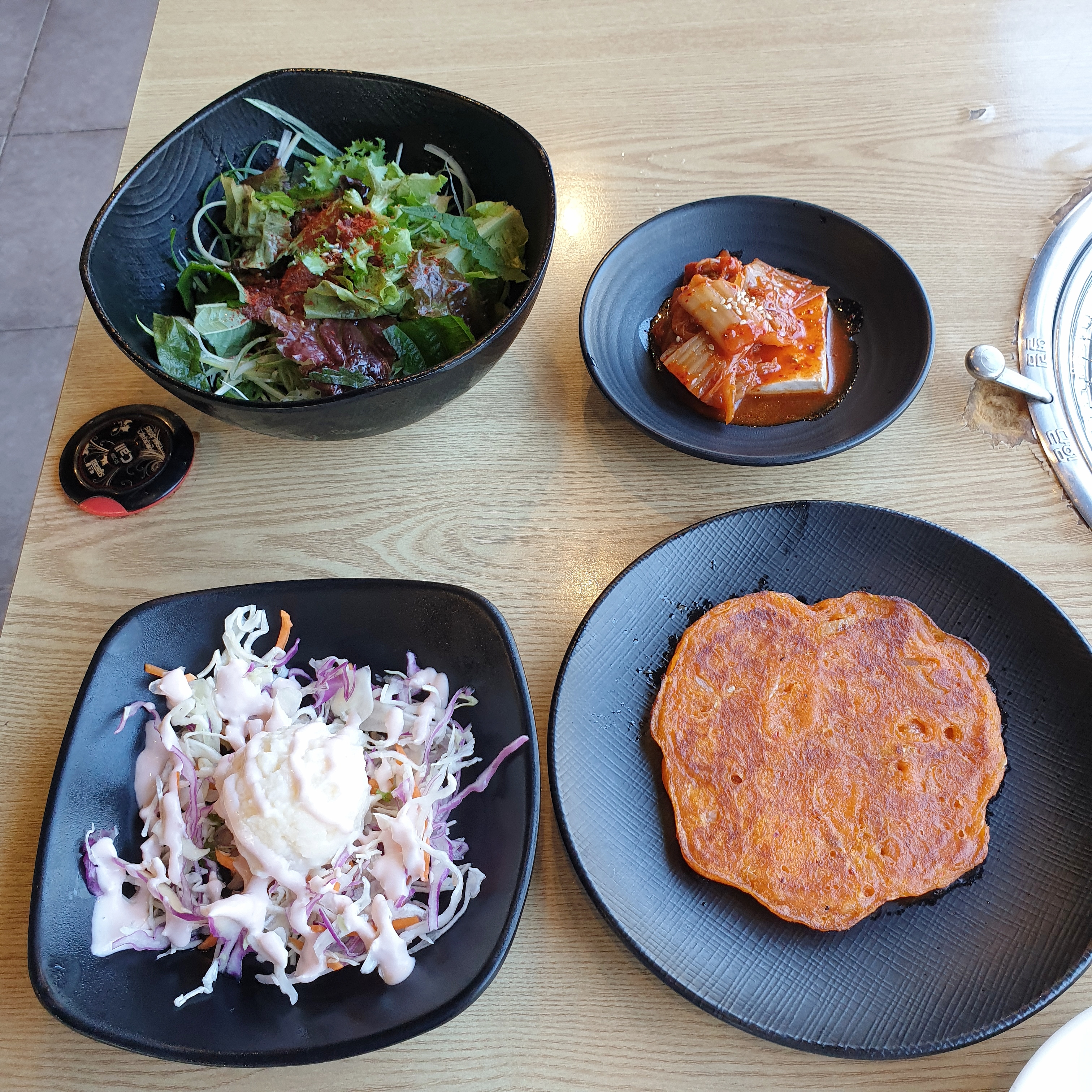 김치전, 감자 샐러드, 두부김치, 파절이,
