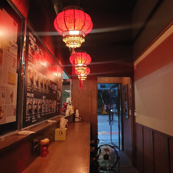 생각보다 가게가 작지만 입구부터 중국음식점인지 바로 알 수 있었습니다. 뭔가 귀엽고 시선을 끄는 홍등과 간판이 눈에 띄어서 무슨 곳인지 몰라도 들어가게 될 것 같아요.