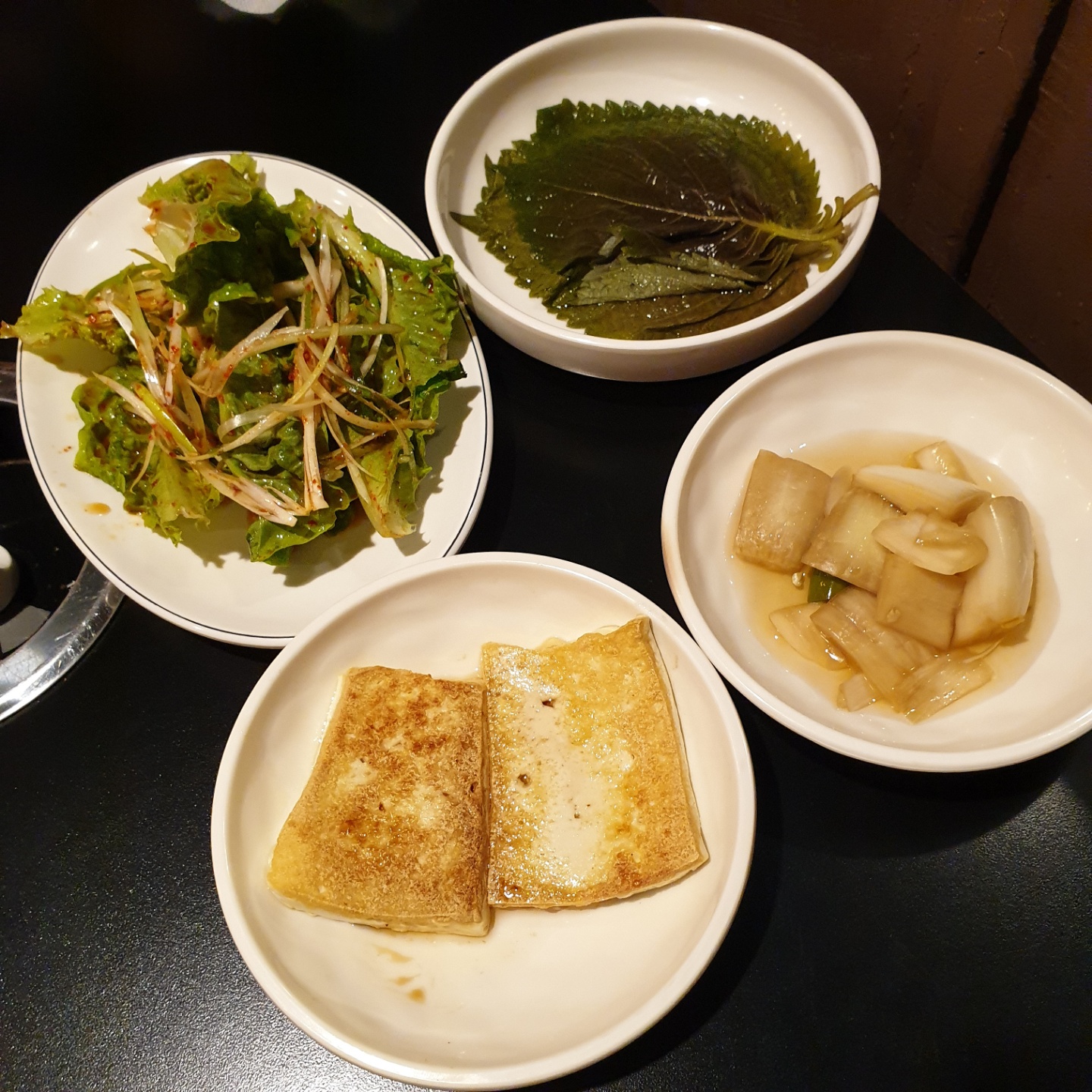 양파 절임과 깻잎이 있는데요